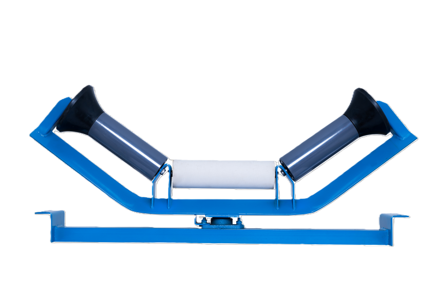 Trogvormige belyningshakies word gewoonlik gebruik in situasies waar die vervoerafstand lank is en die gordelspanning hoog is. Dit kan die plat gordel geleidelik oorgaan van 'n parallelle toestand na 'n trogvorm (of die trogvorm glad oorgaan na parallel), en dit kan die gordelrand effektief verminder. Spanning, en kan voorkom dat die vervoerde materiale versprei word as gevolg van die skielike plat van die gordel. Die struktuur van die trogtipe selfbelyningsbeugel is oor die algemeen gemaak van staal van hoë gehalte, wat die voordele van 'n pragtige struktuur, lae geraas, onderhoudsvry, lang lewensduur en betroubare werkverrigting het. , is 'n goeie keuse vir gevorderde gordeltransportstelsels.